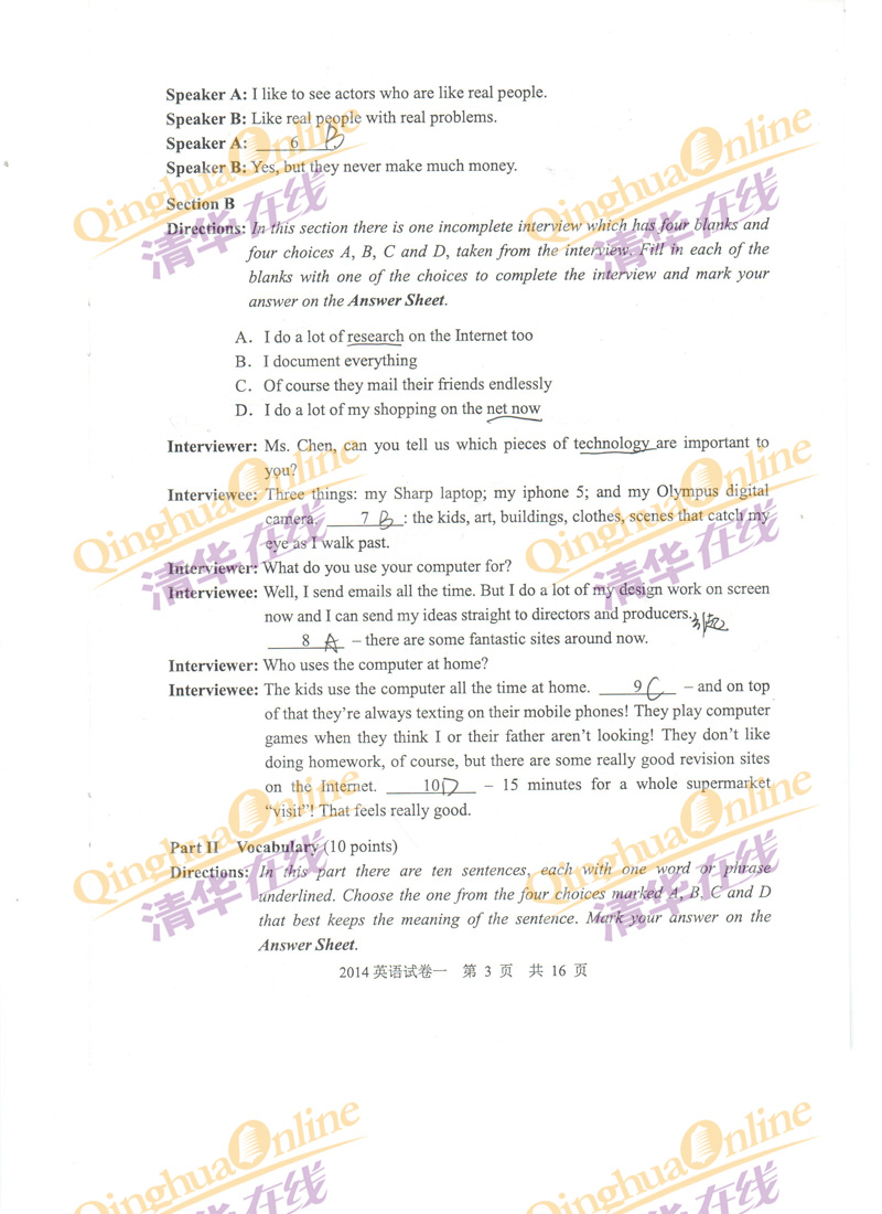 同等学力 本站小编 中国教育在线 2015-04-25 5月25日同等学力申硕考试开考,这里第一时间为考生整理出了同等学力英语答案(一卷),供大家参考,欢迎持续关注! Part I Oral Communication
