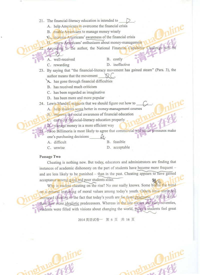 2014同等学力申硕英语答案(网友版)(6)
