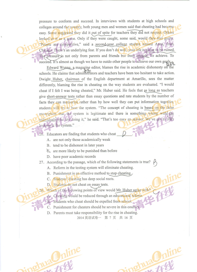 2014同等学力申硕英语答案(网友版)(7)