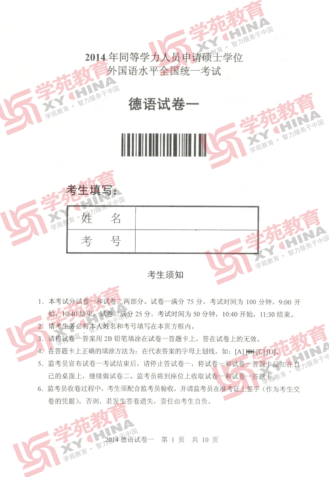 2014年同等学力申硕德语真题及答案
