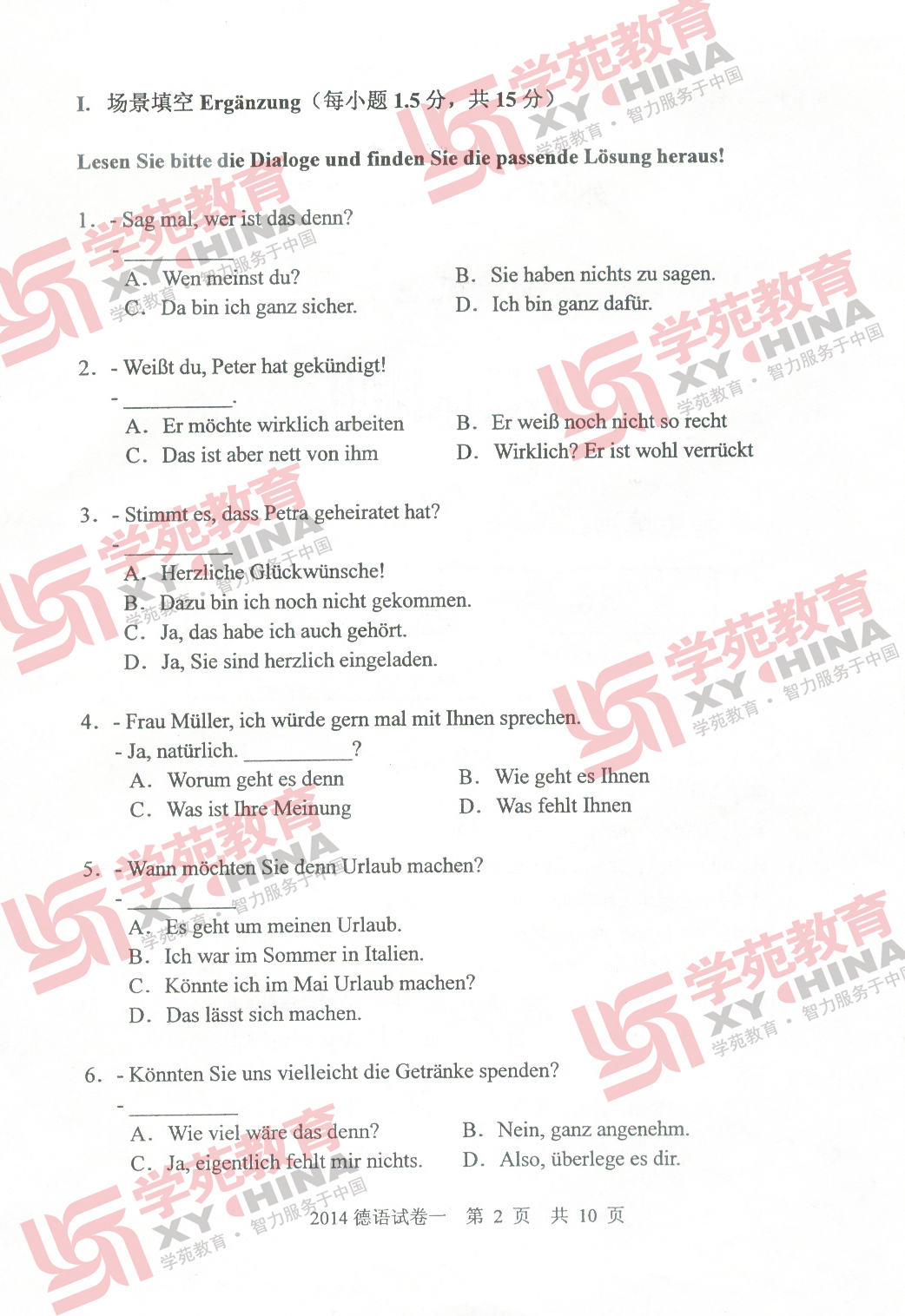 2014年同等学力申硕德语真题及答案(2)