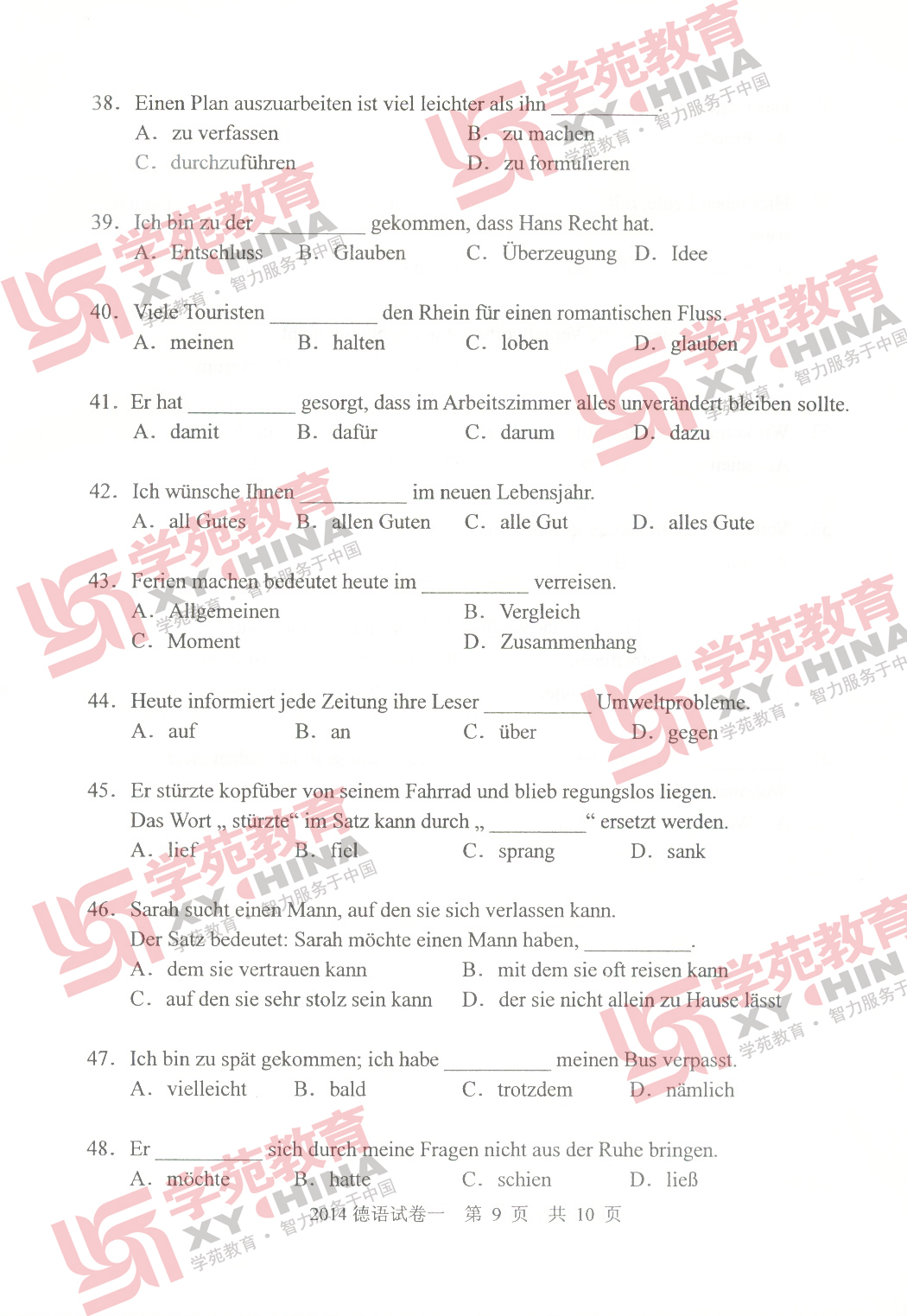 2014年同等学力申硕考试已经结束,中国教育在线第一时间发布2014同等学力英语真题答案,供考生参考。以下是2014年同等学力英语真题答案:  2014 年同等学力真题答案 Dialogue 1-3 C B A 4-6 C A B 7-10 B A C D   Vocabulary 11 -15 B B C D C 16-20 C A A D C   Reading Comprehension Passage ...