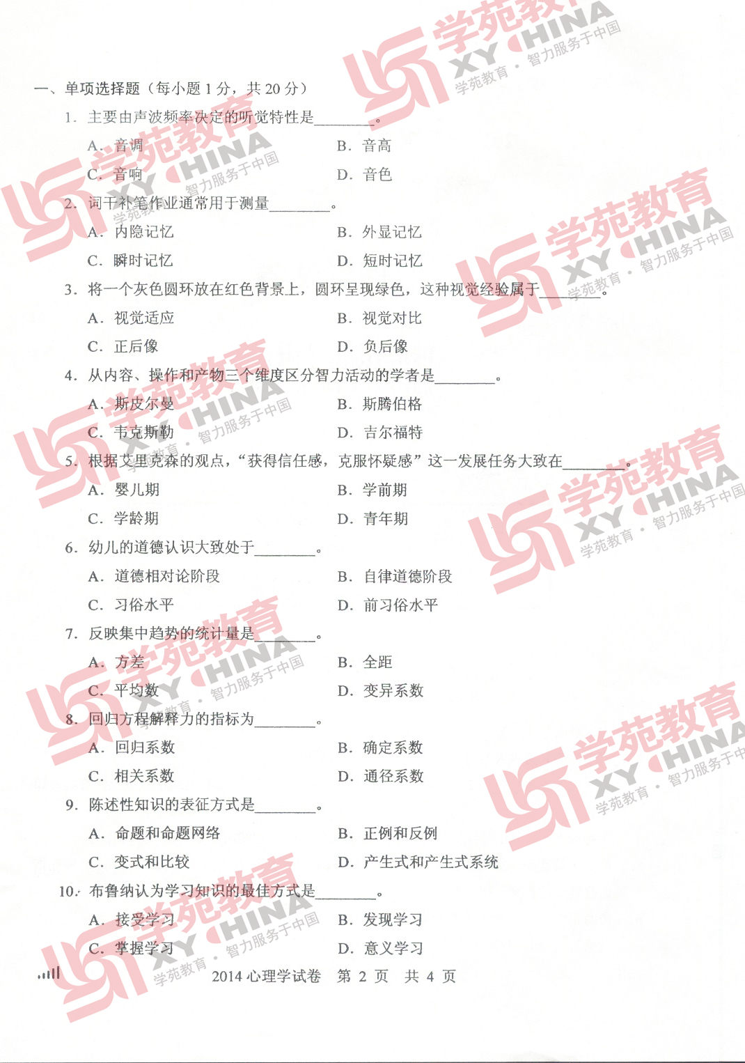 2014年同等学力申硕心理学真题及答案(2)
