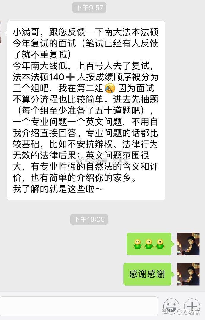 l 前情提要:16年毕业,17年过法考,初试分数380,复试分数偏低,所幸没有跌出排名才得以被拟录取。南大今年大佬众多,400+以上4个,390+以上13个左右,上岸的众神大多都是一战OR二战,像题主这样的奇葩甚是少见,复试完后深感小巫见大巫,写经验贴都怕是不太够格,奈何小满哥盛情邀贴,又想想虽然没有什么极其成功的经验给你 ...