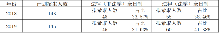 (注:招生计划人数为法学院总的招生计划,包括了法学硕士、法律(非法学)以及法律(法学)