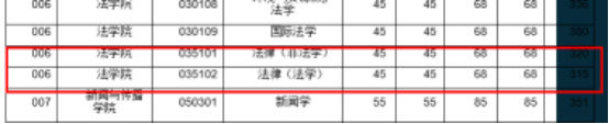 法硕(法学)复试分数线为315,单科线分别为45,68; 图6