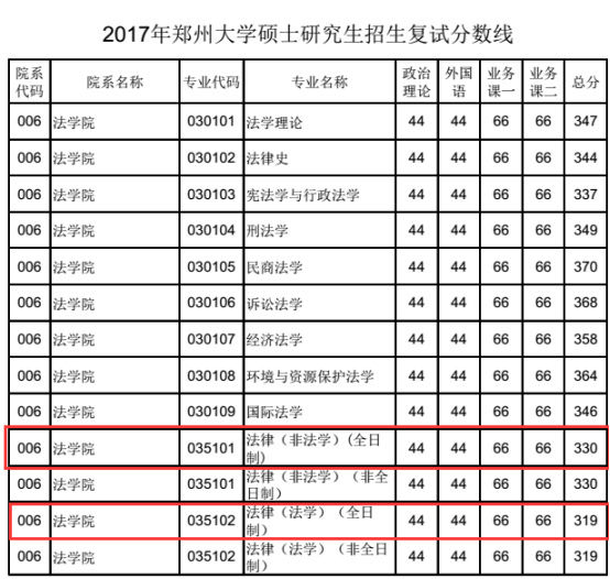 法硕(非法学)复试分数线为330,单科线分别为45,68;