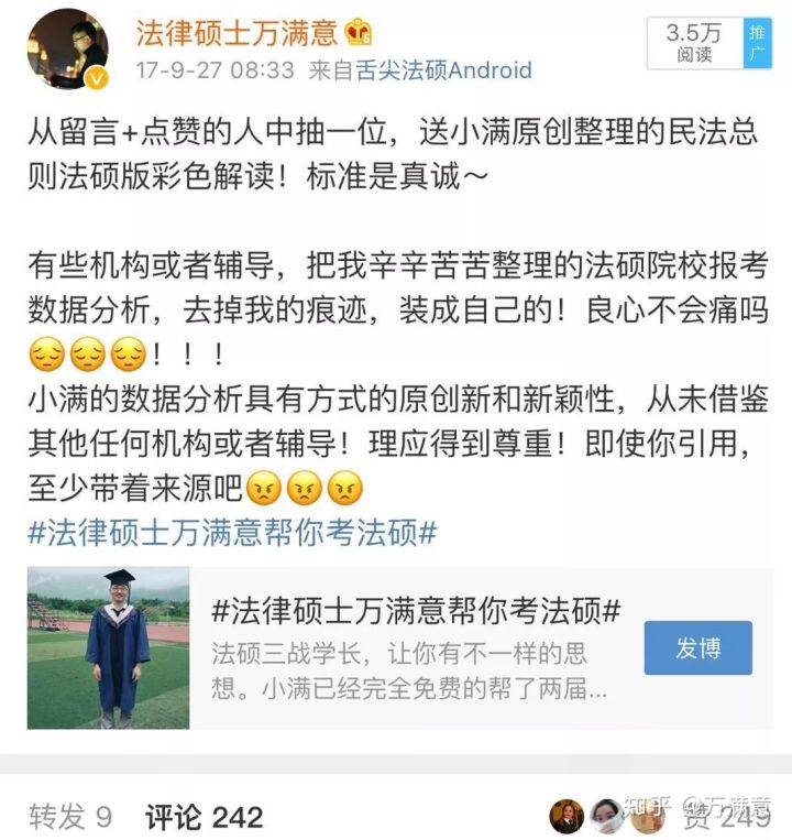 有些所谓的法硕数据分析,直接就是抄袭和模仿我的,找一下他们历史纪录就知道,2017年的院校分析在哪儿???