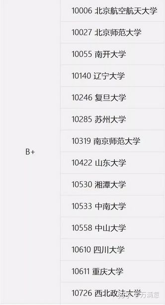 在2017年12月的教育部学科评估中,北京师范大学法学位列B+,与四川大学,南开大学、复旦大学等属同一梯队。