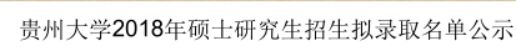 贵州大学2016年硕士研究生招生拟录取名单公示