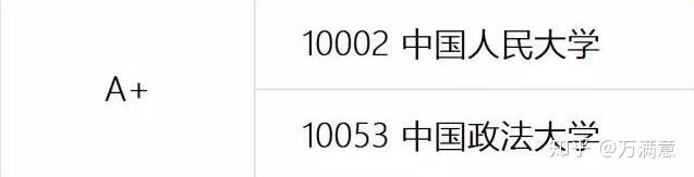 在2017年12月教育部法学学科评估中(当下学科最权威的评估)中政大法学荣获法学评估最高等级A+,与中国人民大学齐名(如下图),代表我国法学学科教育最高水准,法学实力雄厚。