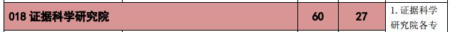 2018年中国政法大学证据科学研究院法律(非法学)(法庭科学方向)进入复试人数26,录取22人,万满意提醒录取最低分336