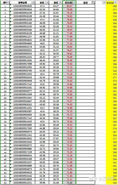 (初试成绩(黄色部分)的获得极为麻烦,法学院仅提供是录取名单)