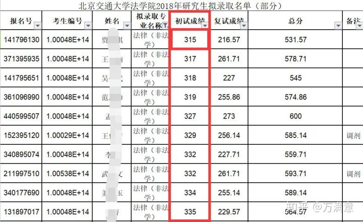 法硕(非法学)全日制拟录取25人(含调剂10人),录取最低分315,315~320分数段有4人,分数集中在330以上;