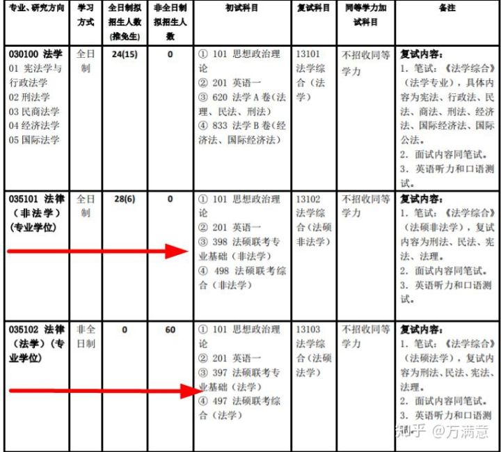 法硕(非法学)只招收全日制拟招生人数为21人,其中推免3人,所以统招人数为18人;法硕(法学)只招收非全日制50人,没有推免计划。(如图2所示)