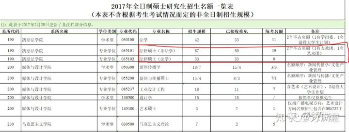 法硕(法学)2017年在没有统招名额的情况下,仍然有57人报考该专业,但并未录取一人;2018年在没有统招名额的情况下,有223人报考法硕(法学),最后录取了11个非全日制。提请各位同学注意2019年招生简章已明确法硕(法学)没有统招名额。