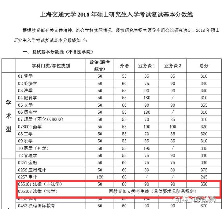 上海交通大学凯原法学院法硕(非法学)复试分数线为350,法硕(法学)为国家A线(315)(如图4所示)