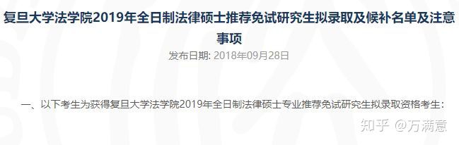 复旦大学法学院2019年全日制法律硕士推荐免试研究生拟录取及候补名单及注意事项_法律硕士万满意_新浪博客