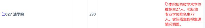 2018与2019最大的区别就在关于推免的表述上,2018年复旦大学招生人数是不包括推免人数的(图片中没有),而2019年招生人数包括了62人推免(图片中有),而且已经公布了全部录取名单,几乎百分之百可以确定,2019年复旦大学统招人数法硕非法学118人,法硕法学40人,而去年非法学统招录取人数可是达到180人的,法硕法学录取人数39人。 换句话说,表面上,法硕(非法学)计划招收180人,相比2017年的165人,多了15人,但实际上,180人里面包括了62人推免,2019年复旦大学法硕非法学缩招62人,法硕法学缩招1人。