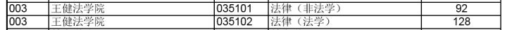 法硕(非法学)计划招生70人左右;法硕(法学)计划招生98人左右。