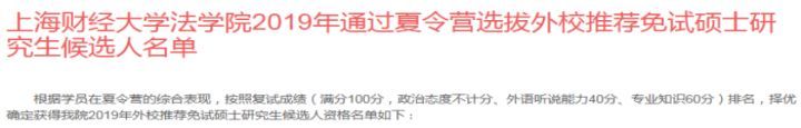 注意:由于上财本校推免生的10人专业方向无法确定,所以上述的法硕招生人数都是非法学不足78人,法学不足25人。(上财的推免生来源由夏令营、(非夏令营)校外推免生、本校推免生三部分构成)