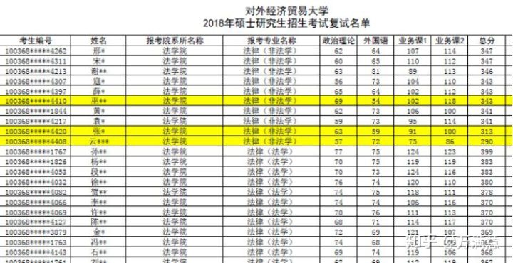 2018年对外经济贸易大学法律(法学)进入复试基本分数线为342