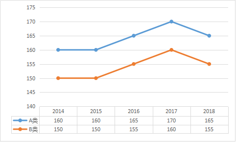 哲学总分国家线趋势图及单科分数 单科(满分=100分) A类 B类 2018 39 36 2017 38 35 2016 36 33 ...