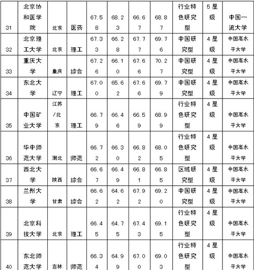 2013年12月30日,中国校友会网最新发布《2014中国大学评价研究报告》,这是中国校友会网大学研究团队连续第12年发布中国大学排行榜。报告显示,北京大学连续7年蝉联中国第一,问鼎2014中国大学排行榜100强榜首;清华大学位居第二,上海交通大学跃居第三,比去年上升2个名次,复旦大学屈居第四,武汉大学排名第五,首次进入全国五强,创历史最高排名。研究团队提出2014中国大学分类新标准,率先将毕业生质量纳入大学分类,35所大学入围2014中国研究型大学。华中科技大学武昌分校、华中科技大学文华学院和吉林大学珠海学院位居2014中国独立学院排行榜前三强;湖南涉外经济学院、北京城市学院和山东英才学院名列2014中国民办大学排行榜前三甲。值得关注的是,最新发布2014中国大学学科水平排行榜,清华大学排名第一,北京大学名列第二,中国人民大学居第三。