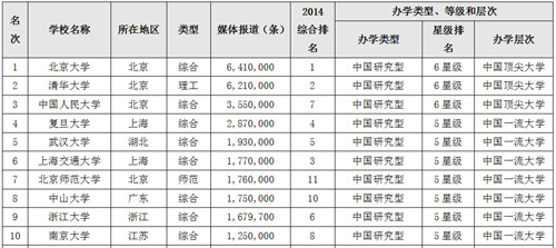 2014中国最具媒体影响大学排行榜100强揭晓,北大连续8年蝉联榜首
