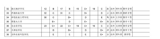 在下表的教师水平、教师绩效、毕业生质量、新生质量对照排行榜中,凡等级在C级及以上的,列出排名和等级,D+级及以下的只列等级,不列排名,等级相同,排名不分先后。其中的毕业生质量得分,是新生质量排名和教师水平排名相加之和,毕业生质量得分相同的,按教师水平排名排列。