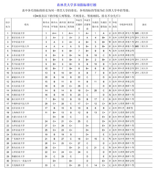 以下是2014武书连中国农林类大学多项指标排行榜。