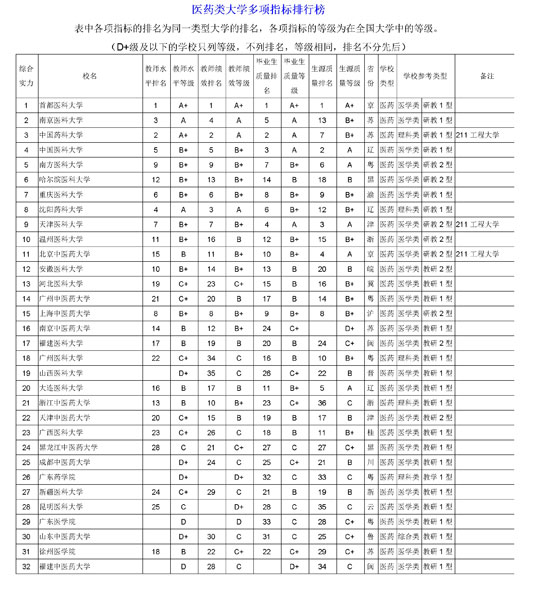 以下是2014武书连中国医药类大学多项指标排行榜。