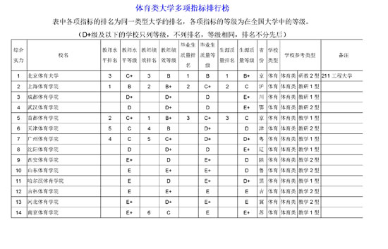 以下是2014武书连中国体育类大学多项指标排行榜。