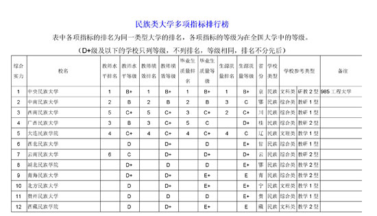 以下是2014武书连中国民族类大学多项指标排行榜。
