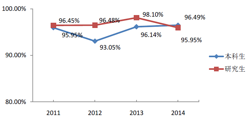 图1 2011-2014 届毕业生就业率变化趋势
