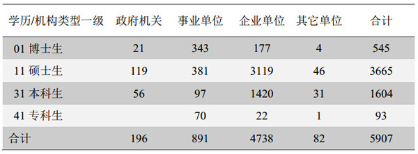 表2 同济大学 2014 届毕业生就业单位机构类型统计