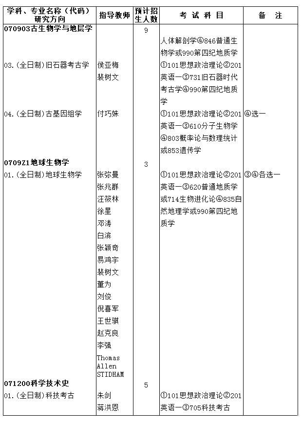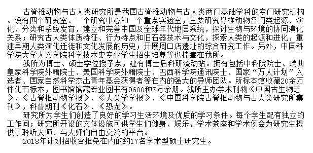 中国科学院古脊椎动物与古人类研究所2018年攻读硕士学位研究生招生目录