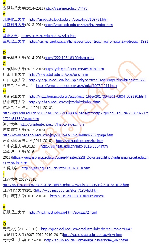 搜遍全网查证,以下学校的真题是在网站上可以找到的,其他学校就需要用2.3.4.5的方法自己查找了: