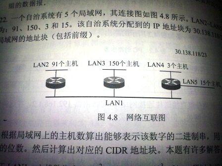 LAN4有3个主机加一个路由器地址为4个地址。至少需要/29地址块