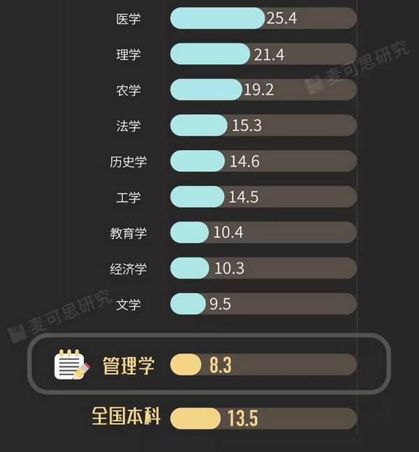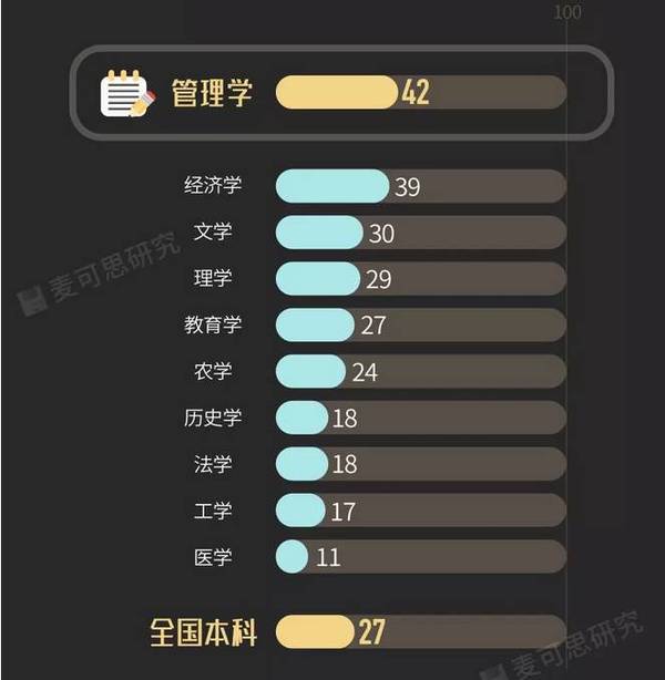读研比例最低,跨考比例最高,似乎可以这样总结,管理学学生最不爱读研,读了也一定要换专业。