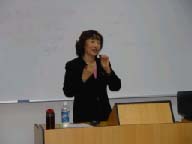 课程开始,鲍教授与学员们一起温习了第一部分课程的内容,在温习优雅走姿、站姿的同时,鲍教授向全班学员演示正确的坐姿等一系列礼仪规范。作为职业经理人,自我介绍、递交名片、握手礼仪、餐桌礼仪是整个商务活动中非常重要的一个环节。鲍教授仔细讲解各种商务礼仪的关键所在,并向学员们逐一演示,并实地指导学员们练习。在练习中,学员们逐渐领会现代职业经理人应当拥有的精神风貌、气质风度、仪容仪表和礼仪修养。