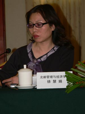 徐慧娟:大家好,我是北邮,从我们学校98年开始允许招收MBA开始。我一直在负责这项工作。我自己也是MBA的老师,对MBA有体会的。我们学校最早招生形势特别不好,人数也少,从2000年开始,学校管理工作交到管理经济学院以后,我们的院长抓了几点,有一支招生队伍,后来我们成立了MBA中心。另外注重了保障生产品牌的宣传积极参加各种宣传活动,另外还搞了新生论坛。已经有四届,新生论坛有企业战术,有行业的老总,我们器材部的老总来参加,这个对我们的品牌宣传成功率非常大。