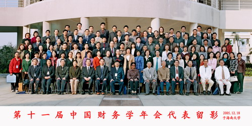 2005年12月18日上午,第十一届中国财务学年会开幕式在海南大学行政楼二楼报告厅隆重举行,开幕式由海南大学经济管理学院院长黄景贵教授主持,海南大学副校长符华儿教授致欢迎词之后,本届年会执行主席、西南财经大学副校长、博士生导师赵德武教授代表全体共同主席致开幕辞,中国财务学年会顾问、天津财经大学博士生导师盖地教授代表全体顾问讲话,海南省会计学会秘书长邓天林教授代表海南省会计学会向年会的召开表示祝贺。开幕式后,全体与会代表合影留念。