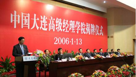 中央组织部副部长王东明在揭牌仪式上发表讲话指出,成立中国大连高级经理学院,是贯彻落实十六届五中全会精神,落实大规模培训干部任务,加强和改进企业经营管理人员教育培训工作的一项重要举措。学院的建设要致力于促进企业的改革与发展。学院主要培训国有重要骨干企业和金融机构现职的高级管理人员、后备领导人员和全国企业经营管理人员培训基地的领导成员及骨干教师,同时要加强对外交流与合作,成为国际交流与合作的窗口与平台。要坚持改革创新,形成自己的办学特色。既要坚持正确的办学方向,围绕企业改革与发展的需要,不断增强培训的针对性和实效性,又要注意吸收世界发达国家办学机构的好办法、好经验。在办学理念、教学体系、管理体制、运行机制等方面不断创新,形成自己的办学特色。要加强基础建设,打造一流的经理学院。要以此为契机,努力建设一流的管理团队、一流的师资队伍、一流的科研队伍、一流的教学设施和办学手段,努力打造成为国际一流的经理学院。教育部党组成员、部长助理郑树山在致辞中说,教育部历来支持和重视高校培养培训企业经营管理人才工作,高水平大学为企业家队伍建设贡献力量也是义不容辞的责任。依托大连理工大学的中国大连高级经理学院应运而生,是企业高级经营管理人才培养方面的一件大事,它不仅要载入大连理工大学发展的史册,也将载入高等教育发展的史册。