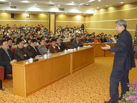有着长期营销经验的孙路弘先生带着他的“武器”闪亮登场:两块宣传屏,黑板和PPT,似乎每一种工具在他的手中都被用到极致。讲座以一份颇具专业性的手机现场调查开始,充分调动了全场气氛。他用幽默中透出智慧的语言,真实而经典的故事,以互动的方式生动地演绎了讲座的主题——“用脑拿定单:销售中的全脑博弈”。“问题是需求之母”、“销售中的全脑博弈模式”等精辟论点更给同学们带来了耳目一新的营销理念。