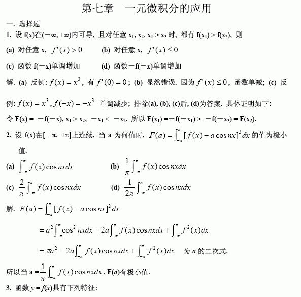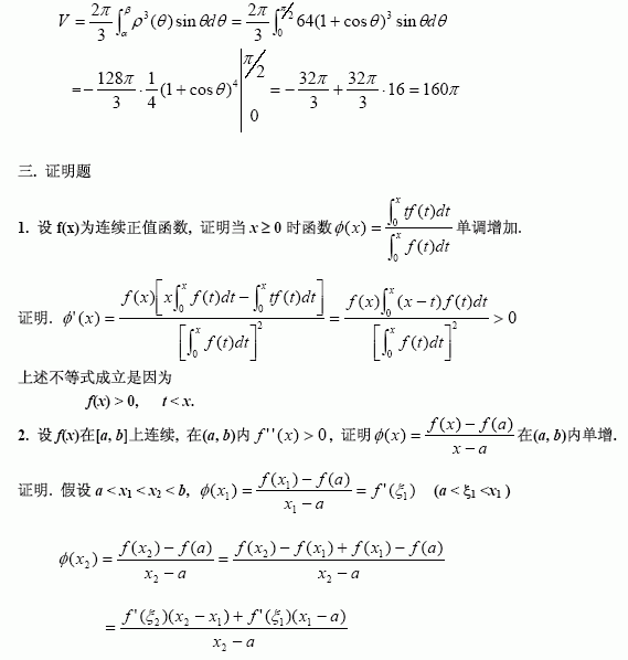 陈文登数学复习理工类官方习题答案一元微积分的应用一