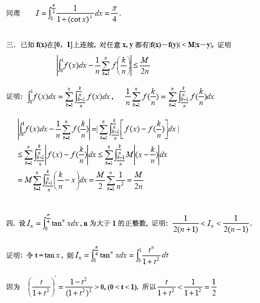 陈文登数学复习理工类官方习题答案定积分广义积分一
