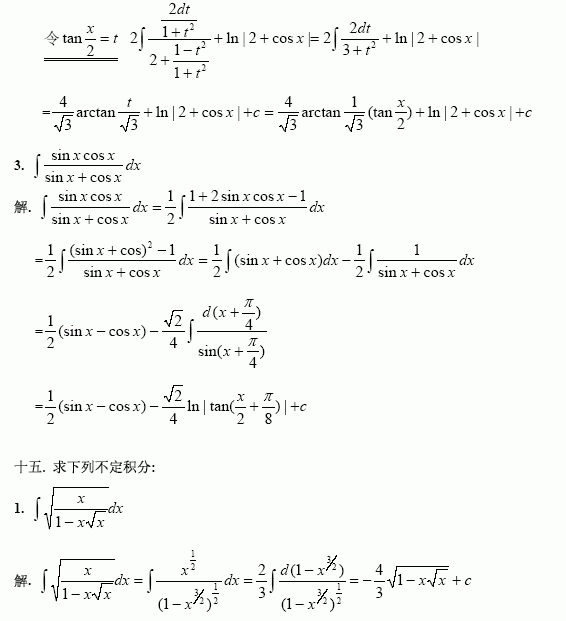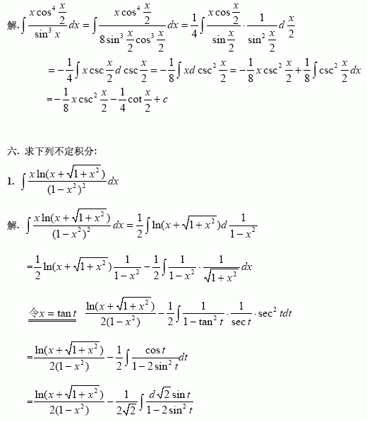 陈文登数学复习理工类官方习题答案不定积分二