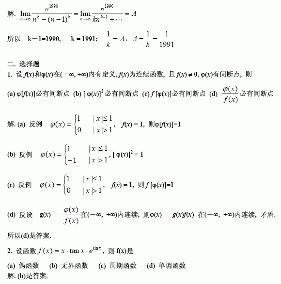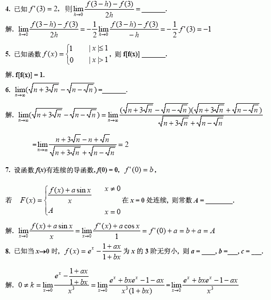陈文登数学复习理工类官方习题答案函数极限连续一