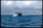 A man raises a flag on a nearby pole to signal the catch. By the time the boat crew has towed the carcass to the edge of the ice, villagers are streaming toward it. Villagers grab the line around the fluke of the whale and haul away with shouts and laughter. Slowly the carcass, more than four times the weight of a bull elephant, appears on the ice to be cut up, dragged to the village and stored in pits in the permanently frozen ground.